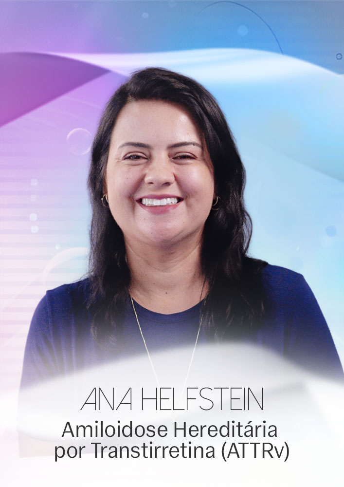 Ana vive com Amiloidose Hereditária por Transtirretina (ATTRv) e carrega uma experiência única: enfrentou a doença tanto como familiar quanto como paciente. Profissional da área da saúde, ela precisou lidar com o desafio de mudar de perspectiva e ocupar o lugar de quem recebe o diagnóstico. Graças ao diagnóstico precoce, teve a oportunidade de adaptar sua vida e buscar cuidados que lhe permitem viver com mais qualidade. A partir desse momento, passou a refletir profundamente sobre seus sonhos e o propósito de sua trajetória. Ana encontrou na espiritualidade, na filantropia e nas práticas integrativas caminhos de força e significado. Engajada na causa, atua de forma voluntária em uma associação de pacientes, ajudando a levar informação e apoio a outras pessoas. Sua história mostra como o conhecimento e o cuidado podem transformar o destino de uma família. Com esperança e sensibilidade, ela escolheu olhar para a vida com amor e novos projetos. Entre eles estão viajar, seguir ajudando outras pessoas e realizar o sonho da maternidade.